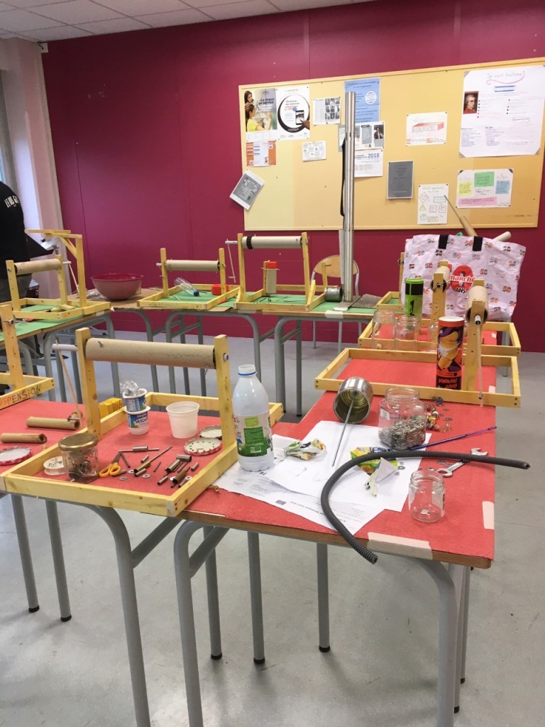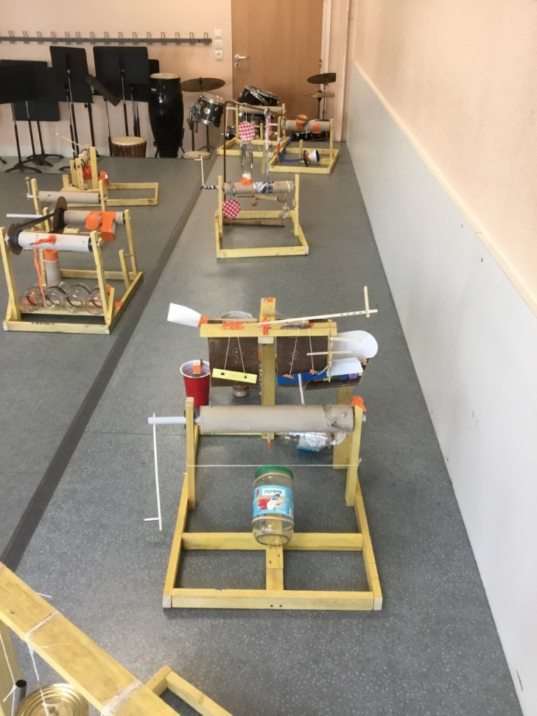 En février 2020, les 3 membres du collectif Zögma de Grenoble accueillis par Mme Polin ( enseignante en éducation musicale)investissent la salle de musique du collège Charles Munch pour une semaine de résidence. Ils font travailler 18 élèves de 4°5 CHAM (classe à horaires aménagés musique) sur la construction de machines musicales mécaniques répondant au cahier des charges du collectif. Les élèves ont conçu leurs machines sonores à partir de matériaux de récupération, souvent à partir de ce qu’ils avaient chez eux.