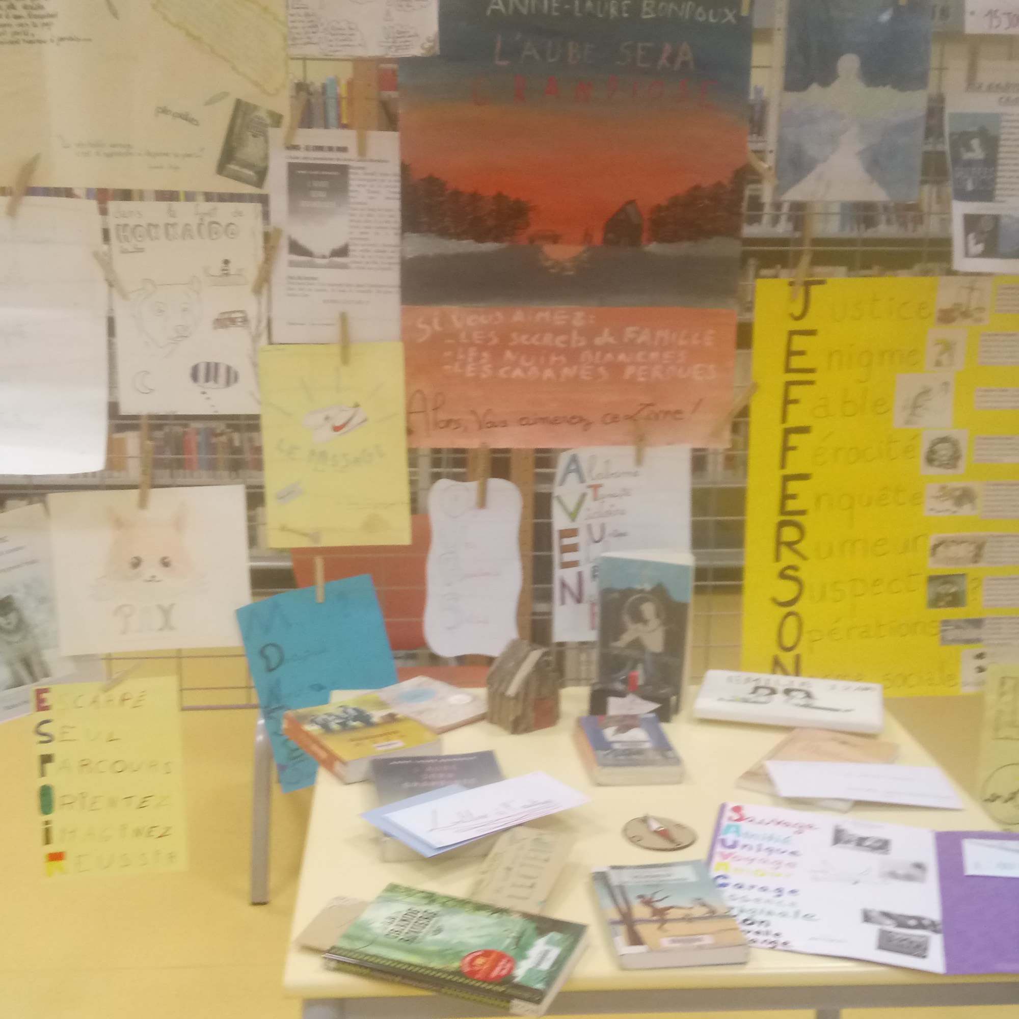 Dans un premier temps ils ont choisi un livre parmi ceux proposés par la documentaliste. Deux semaines plus tard, lors d’une séance au CDI, ils ont présenté leurs livres à la classe. Il fallait parler du livre bien sûr, mais aussi donner son avis, et surtout proposer une création : certains ont écrit une lettre à l’auteur, d’autres ont réalisé une affiche. Ceux qui aiment le théâtre, ont joué une scènette inspiré du livre. Quelques uns ont fabriqué un objet, ou dessiné abécédaire, d’autres se sont transformé en journalistes, etc…